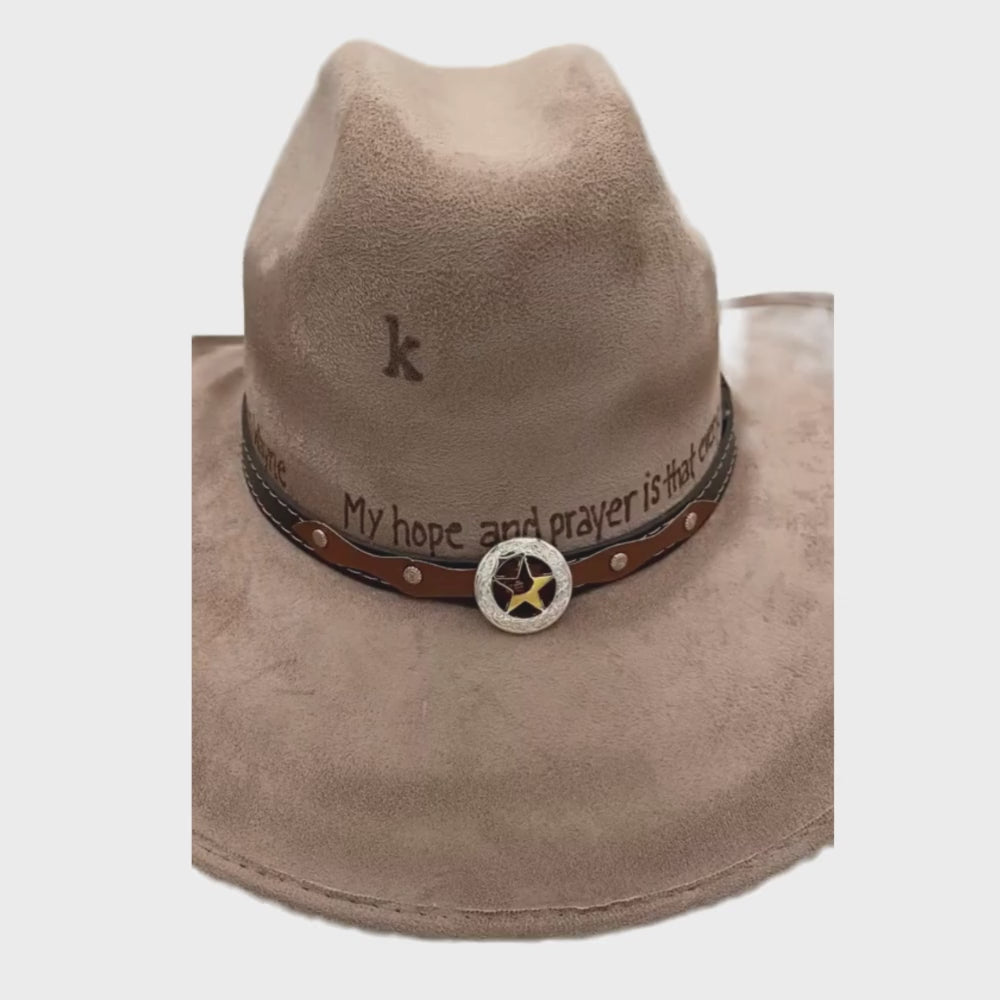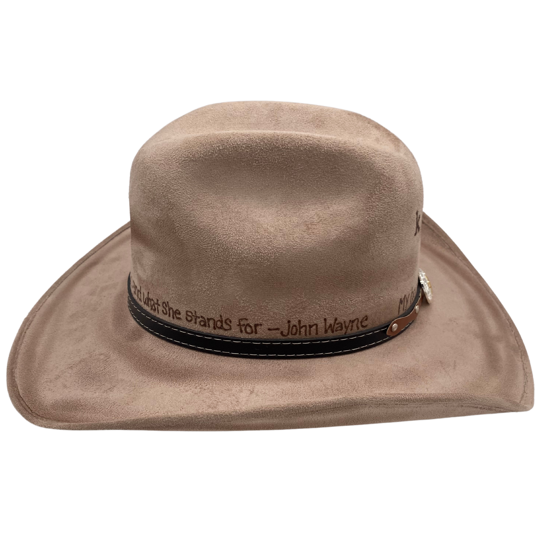 CUSTOM ORDER! This Crown Top Western Legend Hat is a one-of-a-kind 100% hand burned and designed.