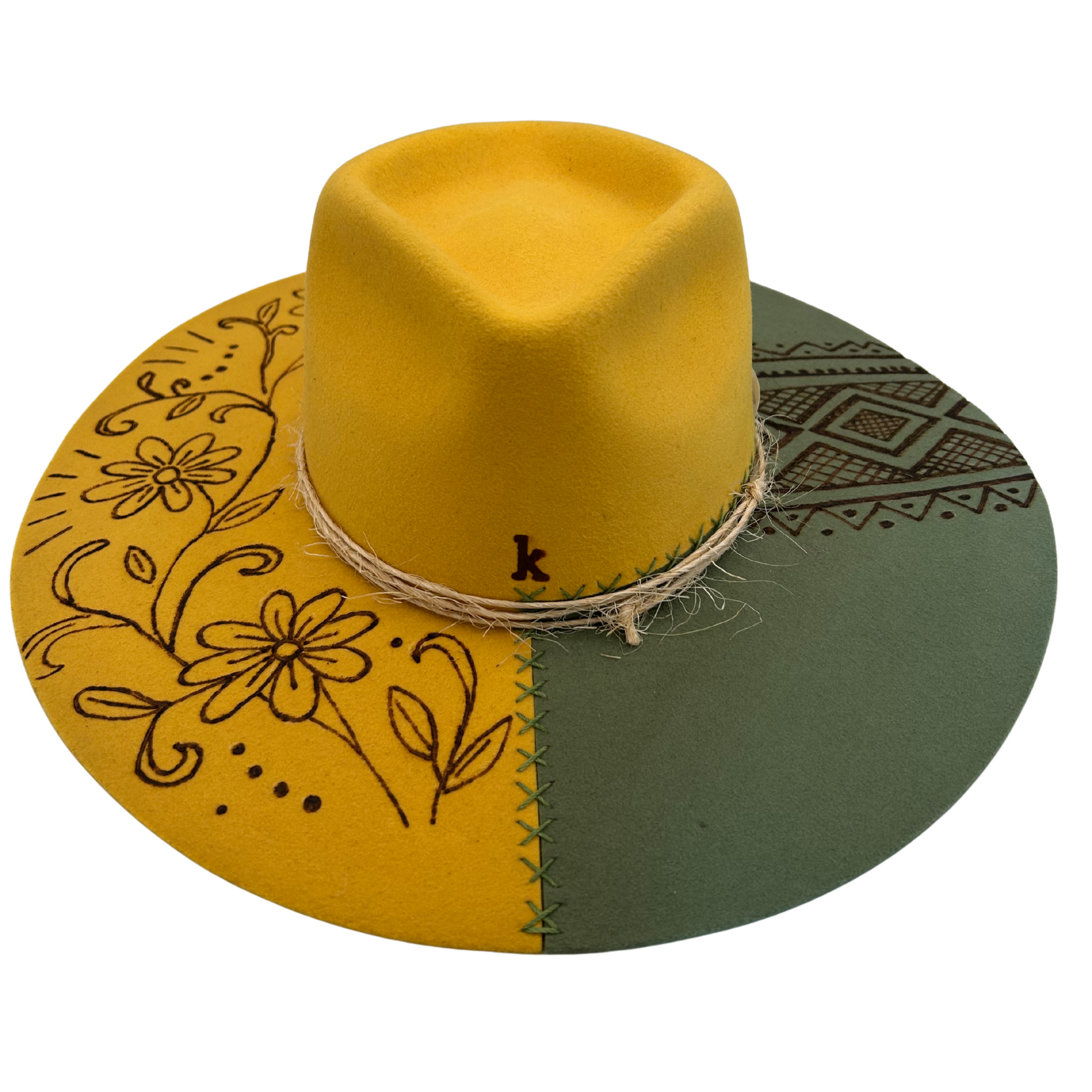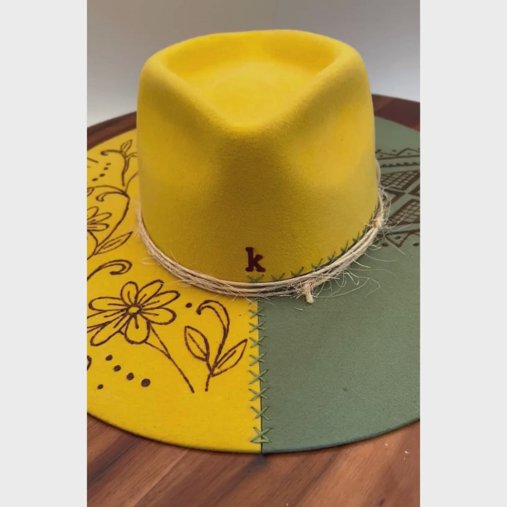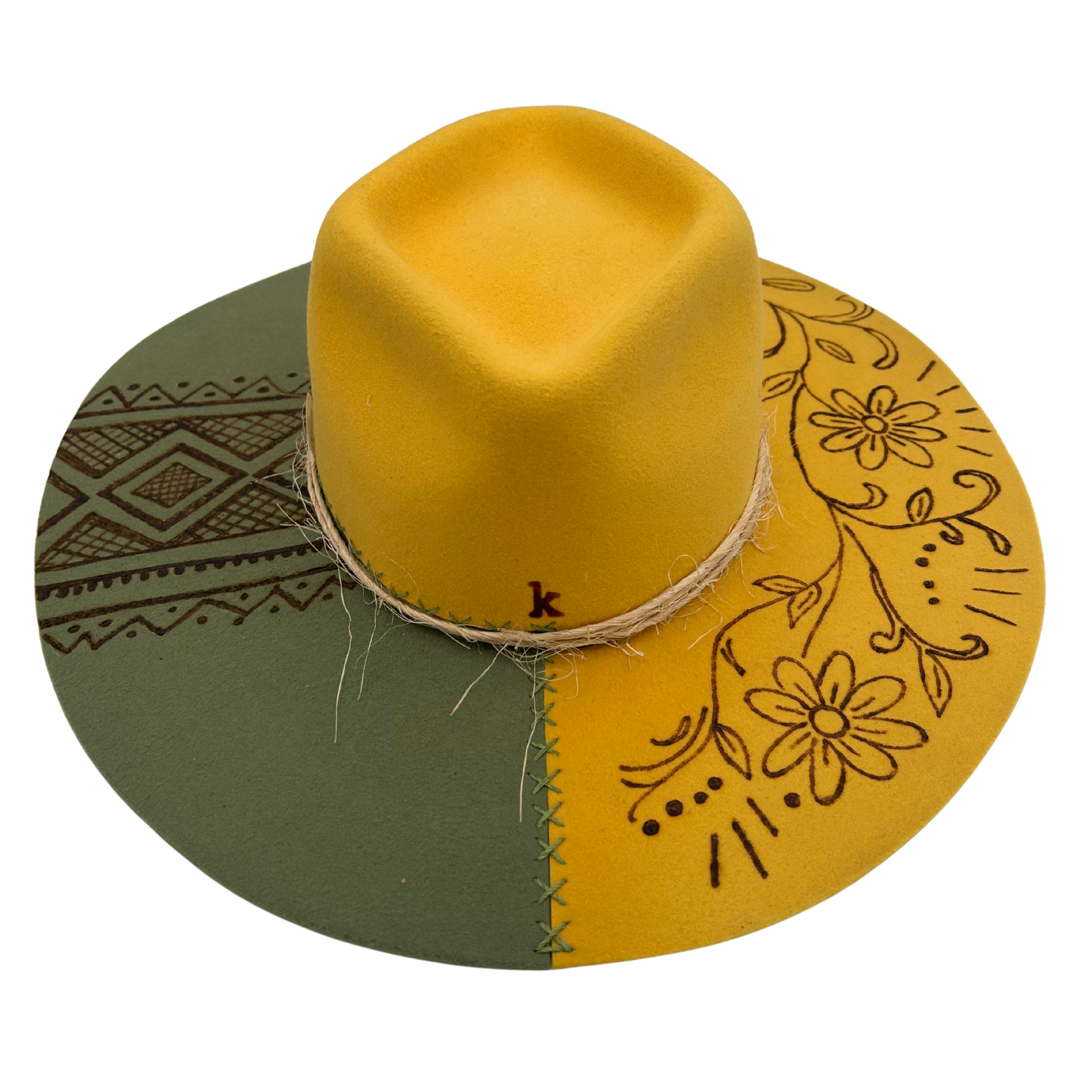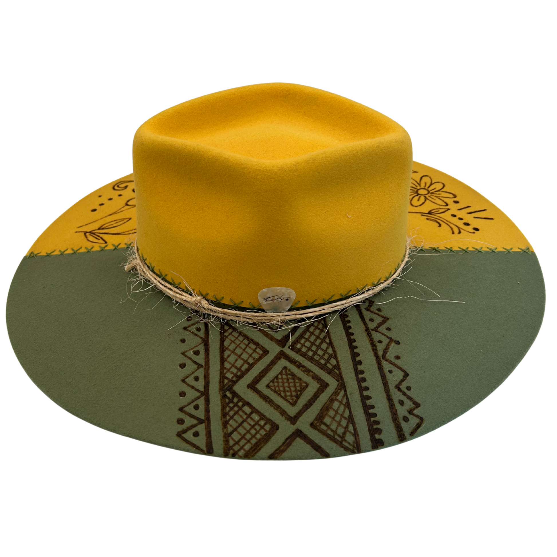 This 100% Bolivian Wool Hat is a one-of-a-kind design and hand burned.